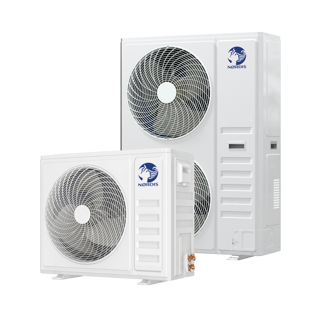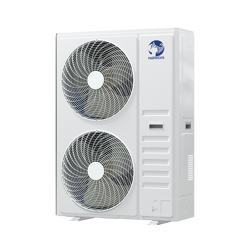 Завдяки компактній конструкції та можливості прокладання трубопроводів довжиною до 1100 метрів VRF-системи NØRDIS забезпечують високу гнучкість для складних планувань будівель. Одна система може підключати до 80 внутрішніх блоків, а триспрямоване підключення труб (спереду, збоку та ззаду) значно спрощує монтаж навіть у обмеженому просторі.
